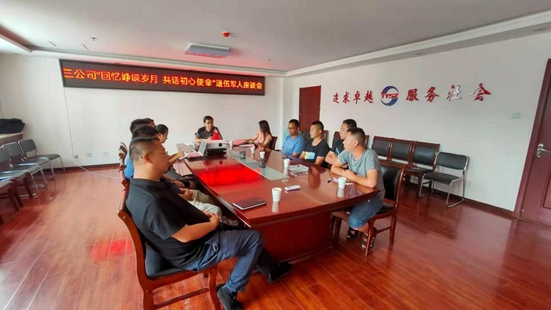 8月1日,三公司召開“回憶崢嶸歲月 共話初心使命”退伍軍人座談會。共11人參加了會議。會上,大家一同觀看了視頻《人民軍隊的擔(dān)當(dāng)》。大家分別介紹自己的軍旅生涯,并結(jié)合自己的工作實際,就如何發(fā)揚軍人風(fēng)采、不忘初心、堅持釘釘子精神暢所欲言。經(jīng)理栗建軍、黨支部書記郭娟娟向退伍軍人們致以節(jié)日祝賀,勉勵大家要在工作中帶頭弘揚正氣,踐行“退伍不褪色,退役不退志”的錚錚誓言。