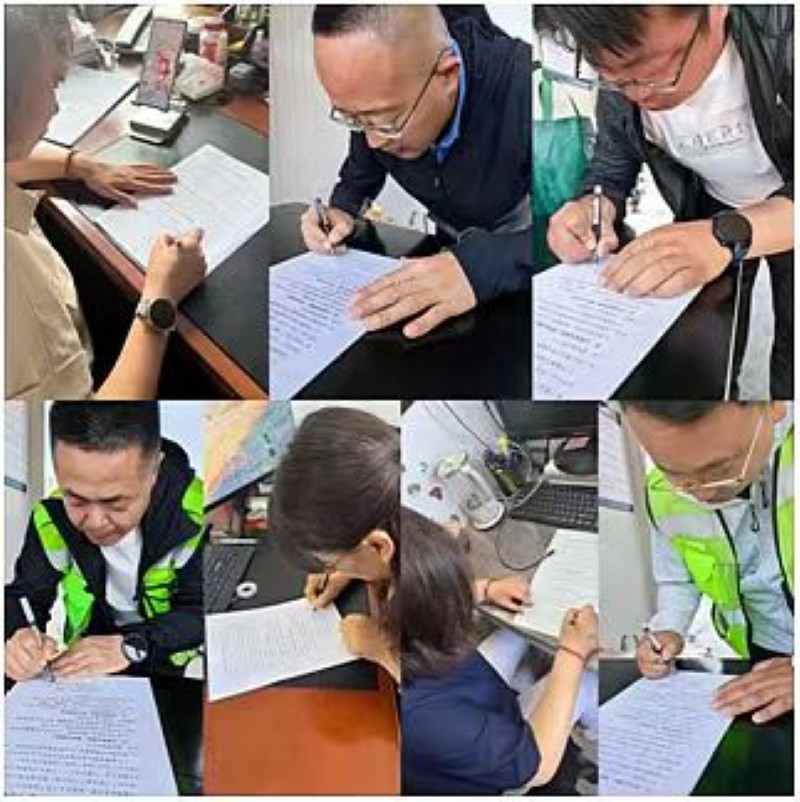 6月6日,太原市政集團(tuán)組織全體黨員干部簽訂《太原市政建設(shè)集團(tuán)有限公司黨員干部“八小時(shí)之外”遵紀(jì)守法承諾書》。承諾書從堅(jiān)守政治原則、遵守法律法規(guī)、凈化社交圈子等方面,對(duì)黨員干部“八小時(shí)之外”言行舉止明確提出11點(diǎn)紀(jì)律要求,強(qiáng)調(diào)黨員干部應(yīng)時(shí)刻將紀(jì)律規(guī)矩挺在前面,始終牢記擔(dān)當(dāng)使命,抵制奢靡享樂,確保紀(jì)律規(guī)矩永遠(yuǎn)“不下班”。