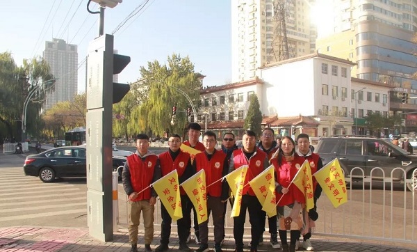 活動中,一公司、二公司、三公司、四公司、八公司分別組織志愿者在旱西關(guān)街新建路交叉路口進行站崗。志愿者們按照相關(guān)要求身穿志愿者統(tǒng)一標(biāo)識服裝,手持“交通志愿者”小黃旗,站在旱西關(guān)街新建路交叉路口,熱心提醒行人與非機動車文明出行,協(xié)助交警維護交通秩序,積極樹立講文明守秩序的榜樣。