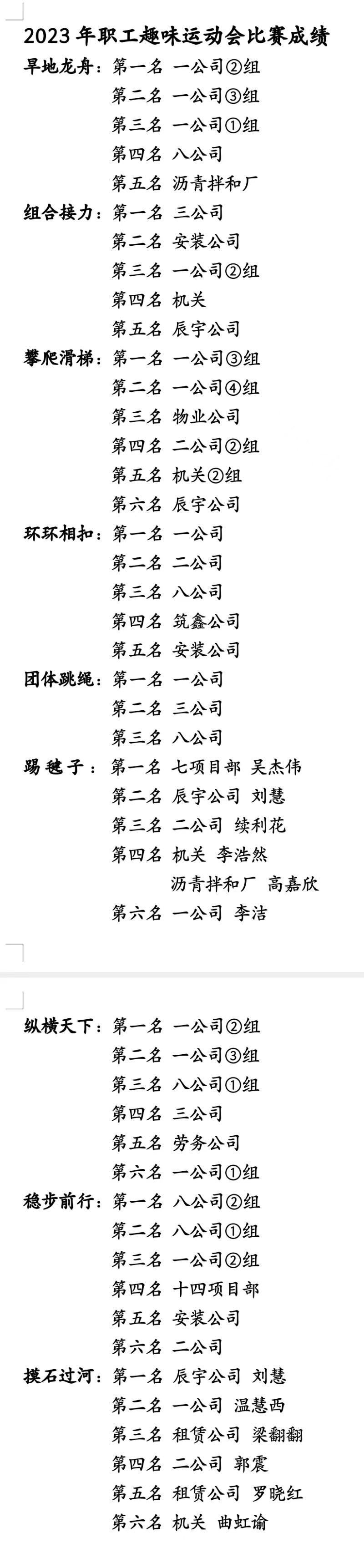 此次運(yùn)動(dòng)會(huì)主要以大型趣味項(xiàng)目為主,歷時(shí)兩天共設(shè)八個(gè)集體項(xiàng)目,兩個(gè)個(gè)人項(xiàng)目,除了保留“環(huán)環(huán)相扣”“團(tuán)體跳繩”和“踢毽子”三個(gè)傳統(tǒng)項(xiàng)目外,新增“旱地龍舟、組合接力、運(yùn)轉(zhuǎn)乾坤、攀爬滑梯、縱橫天下、穩(wěn)步前行、摸石過河”七個(gè)大型項(xiàng)目,廣大職工踴躍報(bào)名,參與人數(shù)達(dá)到900余人次。大家充分享受著運(yùn)動(dòng)帶來的快樂,用最飽滿的熱情展現(xiàn)了團(tuán)隊(duì)協(xié)作爆發(fā)出的力量,也賽出了市政人“不服輸、敢爭先”的精氣神。