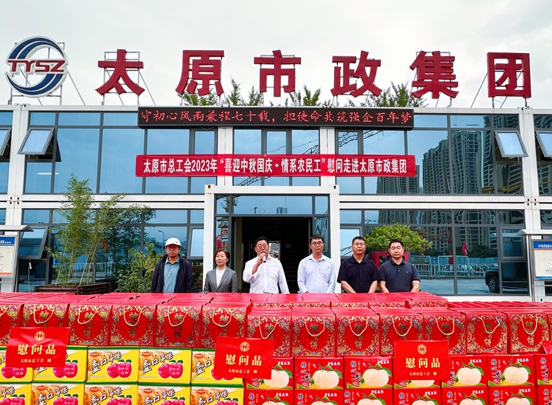 9月19日下午,太原市總工會黨組書記、副主席汪倫,太原市政府農(nóng)民工辦公室科長任俊峰一行來到集團(tuán)公司興華街周邊排水系統(tǒng)及道路園林景觀提標(biāo)改造工程二標(biāo)段施工現(xiàn)場開展“喜迎中秋國慶·情系農(nóng)民工”慰問活動,送來月餅、豬肉、水果等慰問品。太原市市政公共設(shè)施建設(shè)管理中心興華街項(xiàng)目負(fù)責(zé)人牛瑞浩,集團(tuán)公司黨委委員、紀(jì)委書記李茁,黨委委員、監(jiān)事會主席、工會主席馮忠參加了活動。