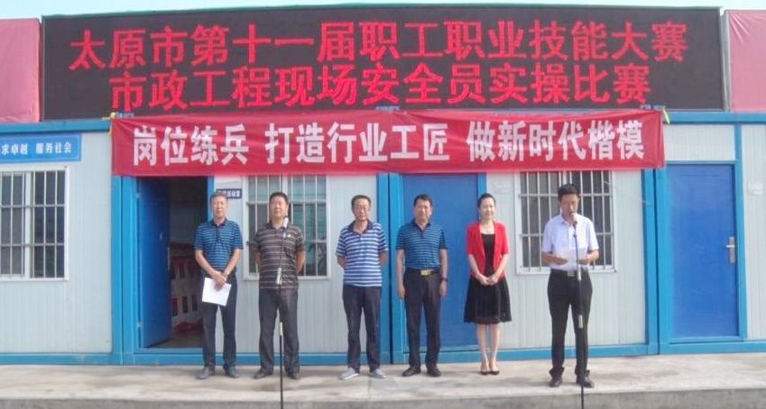 8月10日,由太原市總工會、太原市人社局、太原市經(jīng)信委、太原市科技局聯(lián)合主辦,太原市政建設(shè)集團(tuán)有限公司承辦的太原市第十一屆職工職業(yè)技能大賽市政工程現(xiàn)場安全員實(shí)際操作比賽,在太原市政集團(tuán)康樂街泵站項(xiàng)目部隆重舉行。太原市總工會經(jīng)濟(jì)技術(shù)部部長梁家齊,太原市職工技術(shù)交流站站長周彬,太原市住建委安全處處長李效忠,宣傳部副部長楊紅迎,太原市政集團(tuán)領(lǐng)導(dǎo)郝東輝、馮忠出席了開幕式。開幕式由黨委委員、監(jiān)事會主席、工會主席馮忠主持。