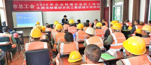 太原市政集團作為建筑施工企業(yè),農(nóng)民工人數(shù)較多、流動性大,已被太原市總工會選定為農(nóng)民工培訓(xùn)基地。在進入施工旺季,工期緊、任務(wù)重,且農(nóng)民工自我保護意識差,遇到了施工安全等問題難以及時解決。為確保培訓(xùn)內(nèi)容全覆蓋,集團公司工會結(jié)合太原市總工會2018年企業(yè)轉(zhuǎn)崗分流職工培訓(xùn)總體規(guī)劃,根據(jù)自身施工特點,開展了多種形式的農(nóng)民工培訓(xùn)課程,目前參加培訓(xùn)的農(nóng)民工已達一千余人。