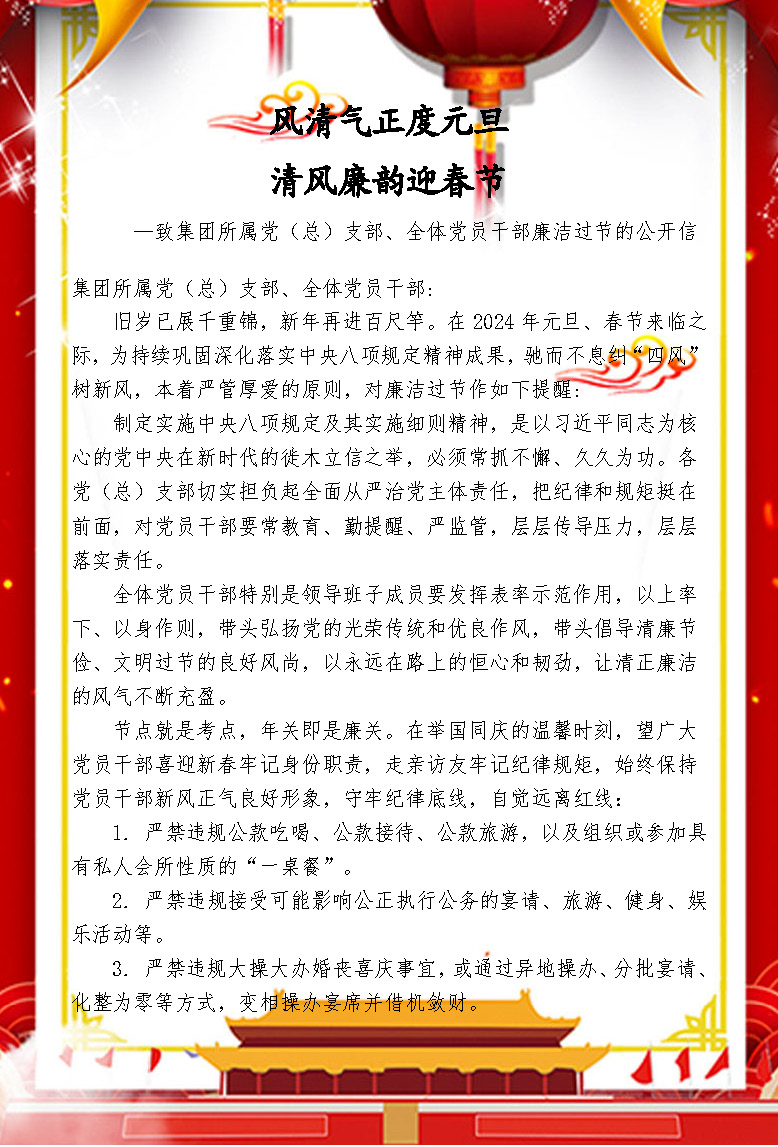 ——致集團所屬黨(總)支部、全體黨員干部廉潔過節(jié)的公開信
