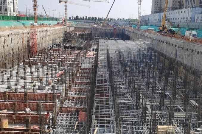 施工中,項(xiàng)目部從制度管控和具體實(shí)操入手,早部署、早落實(shí),始終做到“心中有全局,手中有物資”。該工程的施工重點(diǎn)是深基坑大體積施工,如遇強(qiáng)降雨天氣,基坑內(nèi)積水量大,無法自行排出。項(xiàng)目部根據(jù)深基坑施工現(xiàn)狀,為各施工隊(duì)伍配備排水泵,確保在24小時內(nèi)將積水排出基坑外, 并加快深基坑底板混凝土澆筑,盡早硬化底板地面;基坑兩側(cè)用沙袋設(shè)置阻水帶,提前做好邊坡防護(hù),防止雨水對深基坑造成浸泡侵蝕。同時,項(xiàng)目部安排施工人員加大監(jiān)測頻率,如果發(fā)現(xiàn)數(shù)據(jù)異常,及時上報并組織專家論證,確保深基坑施工“萬無一失”。