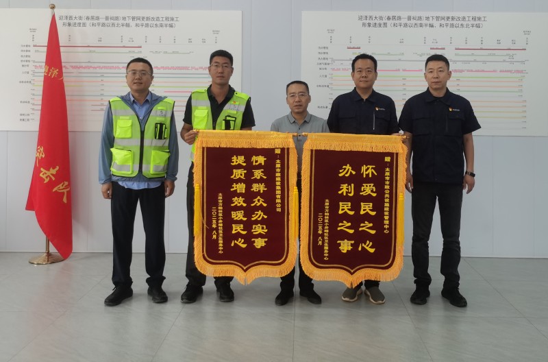 8月29日,太原市政集團(tuán)收到太原市萬柏林區(qū)小井峪社區(qū)衛(wèi)生服務(wù)中心送來的 “情系群眾辦實(shí)事 提質(zhì)增效暖民心”錦旗,感謝太原市政集團(tuán)在迎澤大街(西段)地下管網(wǎng)更新改造工程以過硬的工程質(zhì)量和高效的推進(jìn)速度,高標(biāo)準(zhǔn)開展施工任務(wù),極大改善附近居民的出行條件和生活環(huán)境。