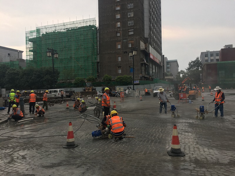 夏日的燥熱抵擋不住全體施工人員的工作熱情,為了全力推進(jìn)工程建設(shè),項(xiàng)目部合理延長(zhǎng)每日施工作業(yè)時(shí)間,增加作業(yè)班數(shù),不分晝夜進(jìn)行施工作業(yè)。為了有效提高施工速度,項(xiàng)目部采用流水作業(yè)的施工方式,多工作面平行作業(yè),提高機(jī)械利用率。同時(shí),項(xiàng)目部針對(duì)季、月、旬作出詳細(xì)計(jì)劃,建立起進(jìn)度協(xié)調(diào)工作制度,每周組織項(xiàng)目部管理人員及各工隊(duì)組長(zhǎng)召開施工調(diào)度會(huì),重點(diǎn)解決施工中的技術(shù)難題,以及計(jì)劃執(zhí)行情況和存在的問(wèn)題,隨時(shí)根據(jù)施工情況調(diào)整各施工項(xiàng)目的人力、機(jī)械和材料用量,全力以赴推進(jìn)工程進(jìn)度。截至7月20日,廣場(chǎng)環(huán)路、迎澤南街路面磚鋪裝已完成100%,廣場(chǎng)西路鋪裝已完成90%,廣場(chǎng)東路完成63%;并州北路及廣場(chǎng)南路完成35%;廣場(chǎng)總鋪裝面積3萬(wàn)多平米,已完成總鋪裝量的50%。