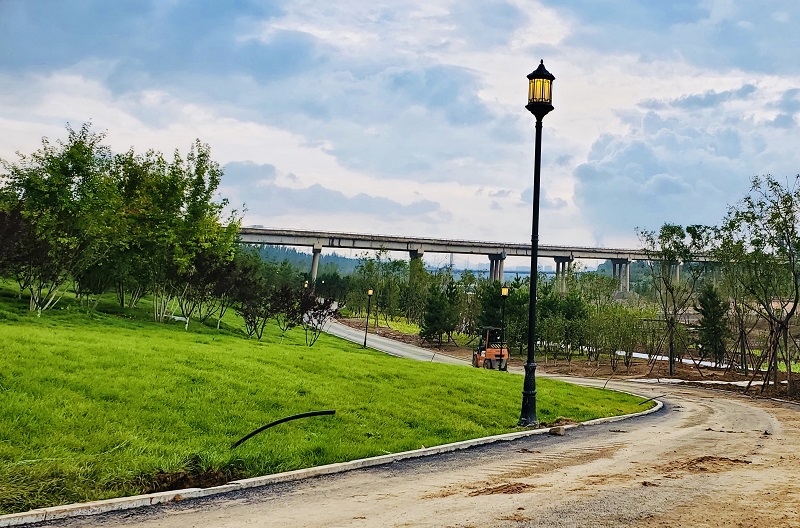 該工程屬于汾河四期治理美化工程的組成部分,要與園林、道路等同步施工,為呈現(xiàn)汾河美化整體效果,施工中時(shí)常出現(xiàn)設(shè)計(jì)變更情況,項(xiàng)目部結(jié)合施工實(shí)際,按照?qǐng)D紙推進(jìn)施工。在三標(biāo)段施工中,設(shè)計(jì)要求將已做好燈基礎(chǔ)的草坪燈改為亮度更高、基礎(chǔ)更大的庭院燈,項(xiàng)目部組織施工人員在不破壞原有路燈基礎(chǔ)的情況下,再次擴(kuò)建開挖新的路燈基礎(chǔ),并在搭建更多模具的基礎(chǔ)上,通過澆筑混凝土保持其安全與穩(wěn)固。同時(shí),因部分路段要增加休息平臺(tái),項(xiàng)目部將已做好的管線破除,重新設(shè)置休息平臺(tái)的末端管線接頭,并嚴(yán)格按照設(shè)計(jì)規(guī)劃,改為繞平臺(tái)一圈后再做管線與基礎(chǔ),以確保汾河景觀的整體呈現(xiàn)效果。
