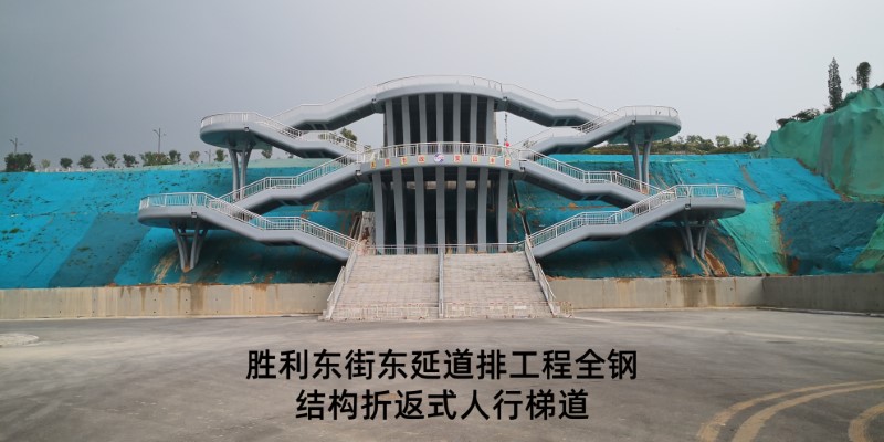 勝利東街東延道排工程起點(diǎn)東中環(huán)路,終點(diǎn)東山高速西側(cè)停車場,施工涉及污水管線、雨水管線、電纜隧道、電力排管、停車場一處,全鋼結(jié)構(gòu)折返式人行梯道一座及長52米,寬15米跨高速人行天橋一座。該工程建成后,成為市民通過橫跨東山過境高速和東峰路的“呂”字型人行天橋,更便捷從市區(qū)前往牛駝?wù)沂苛陥@的一條新線路,八公司全體參建人員先后克服半幅封閉施工、高度落差大、結(jié)構(gòu)工程復(fù)雜等難題,順利完成了跨東山高速公路人行天橋、全鋼鋼箱梁結(jié)構(gòu)人行梯道的施工任務(wù),以“市政實(shí)力”打造城市新名片。攻堅(jiān)戰(zhàn)的硝煙漸漸散去,奮戰(zhàn)的場面依然清晰如昨,市政人甘于奉獻(xiàn)、勇于擔(dān)當(dāng)?shù)木裼忠淮午澘淘谔鞘薪ㄔO(shè)的恢弘畫卷上。