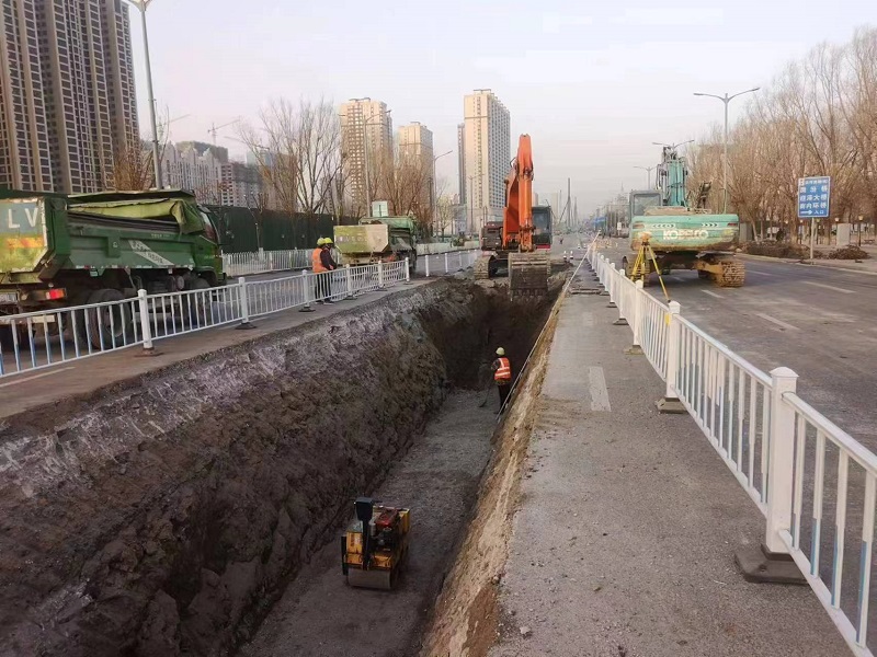接到施工任務后,項目部超前部署、科學規(guī)劃,開展工程推演,根據(jù)施工實際內容,將工程分為8個標段,提前安排各標段的人、機、料配置,并組織進行現(xiàn)場勘測,多處布設探坑,認真摸排現(xiàn)狀管線位置,精準測量拆遷地段,做到施工前各項數(shù)據(jù)“成竹于胸”。由于施工正值冬季,項目部結合施工現(xiàn)狀,制定冬季施工專項方案,提前籌備各類防寒物資,安排專人負責生活及作業(yè)區(qū)的用電及防火管理,有效確保施工安全。同時,項目部同步進行工地大門、圍擋安裝,各類標識標牌準備等工作,僅用2天時間已將3000多米圍擋,10個工地大門及各類標識標牌安排就位,展現(xiàn)集團公司的良好形象。