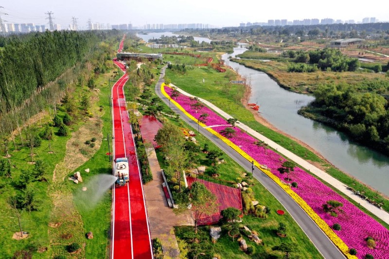 汾河生態(tài)景觀帶工程北起尖草坪區(qū)上蘭汾河漫水橋,南至柴村橋北500米,包括汾河景觀帶工程東岸一標(biāo)段、二標(biāo)段和西岸堤頂路工程,全長約18公里,主要包括橋梁工程、給排水工程和道路工程,于2021年1月開工建設(shè),由三公司負責(zé)承建。該工程作為市重點工程,開工伊始就備受上級領(lǐng)導(dǎo)及廣大市民的熱切關(guān)注,全體施工人員夜以繼日、奮力拼搏,24小時不間斷施工,采用“時間不斷、空間占滿”的施工原則,掀起了大干熱潮,樹立“開工就是決戰(zhàn),決戰(zhàn)必須決勝”的必勝信念。在短短35天內(nèi),西岸堤頂路8400米的道路工程全部完成;由于需要緊急進行降井作業(yè)搶修,15家基層單位歷經(jīng)113個小時聯(lián)合作戰(zhàn),完成降井施工任務(wù),彰顯了新時代市政速度。施工中,項目部堅持“高標(biāo)準(zhǔn)起步、高質(zhì)量建設(shè)、高效率推進”,通過進行技術(shù)交底,組織技術(shù)培訓(xùn),實行統(tǒng)一管理,完善工作機制,為保障工程質(zhì)量打牢堅實基礎(chǔ);召開成本分析會,細化成本目標(biāo),學(xué)習(xí)文明施工管理規(guī)定,嚴格安全技術(shù)交底,制定疫情防控預(yù)案,加強施工現(xiàn)場的成本控制和安全管理。隨著西岸堤頂路彩色陶瓷顆粒的鋪設(shè)完畢,汾河景觀帶工程猶如兩條紅色的長龍,蜿蜒在汾河兩岸,為城市增添了一抹絢麗的色彩。