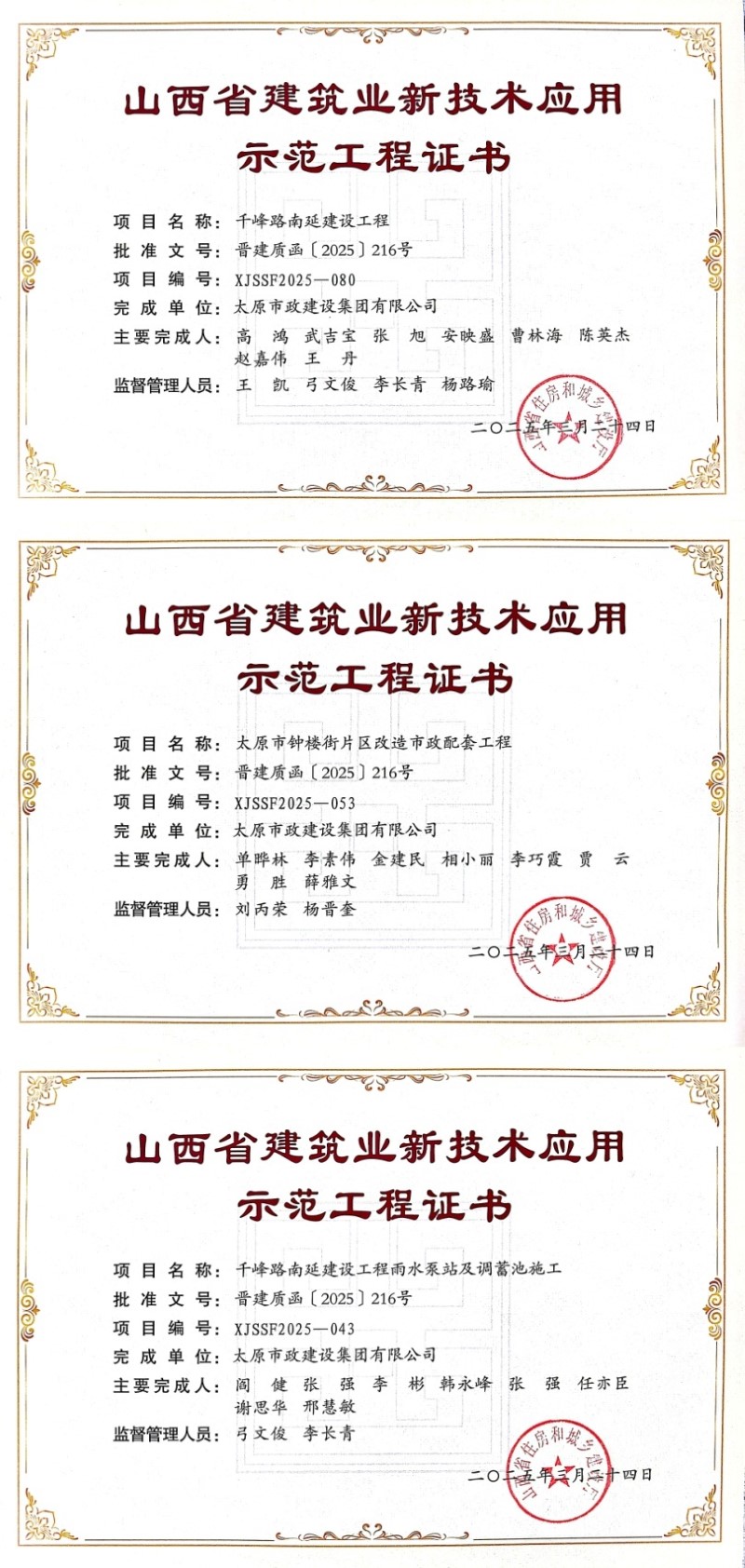 簡訊一:近日,由集團公司承建的千峰路南延建設(shè)工程雨水泵站及調(diào)蓄池施工、太原市鐘樓街片區(qū)改造市政配套工程、千峰路南延建設(shè)工程被山西省住房和城鄉(xiāng)建設(shè)廳評為“山西省新技術(shù)應(yīng)用示范工程”。
