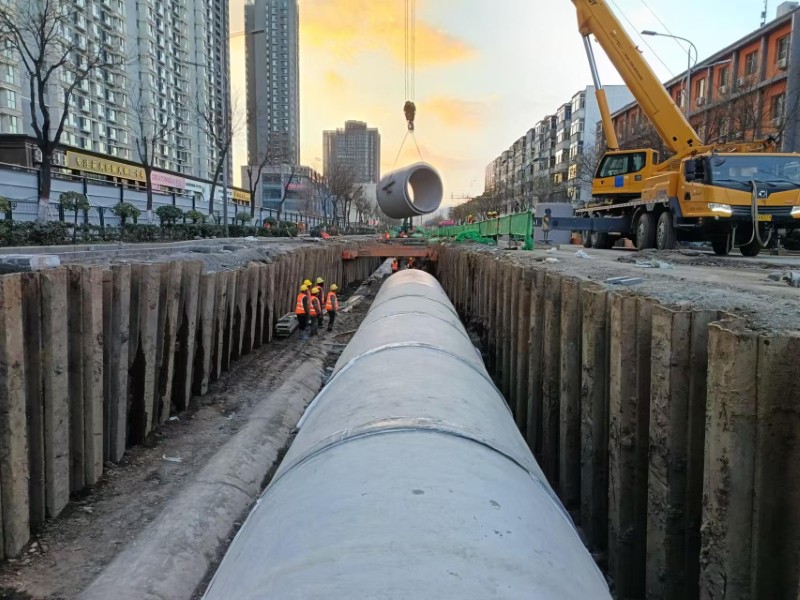 該工程位于勝利街,工程北澗河至解放路段道路全長1.74公里,規(guī)劃紅線寬度50米,污水管線主線長度為1919.5米,雨水管線主線長度為888.1米,雨污水管道施工采用明挖法與頂管施工相結(jié)合的方式。在新建管線區(qū)域,開挖深度超過5米,為確保施工安全,同時最大限度減少對周邊居民區(qū)的影響,基坑溝槽采用拉森鋼板樁進(jìn)行支護(hù)。為保證鋼板樁施打位置準(zhǔn)確無誤,施工人員在溝槽開挖后先進(jìn)行場地平整,同時測量員進(jìn)行定位,每隔兩米在中心線上插入鋼筋頭,以確保標(biāo)記的準(zhǔn)確性。打樁前,施工人員對鋼板樁進(jìn)行逐個檢查。在插打過程中,實(shí)時進(jìn)行監(jiān)測,保證每片鋼板樁的斜度不超過2%,樁體打入后,立即進(jìn)行閉水性檢查,對漏水部位進(jìn)行焊接修補(bǔ),并安排專人每日對樁體進(jìn)行檢查。項(xiàng)目部不斷提升施工安全管理水平,嚴(yán)格把控所有環(huán)節(jié),確保高標(biāo)準(zhǔn)高質(zhì)量完成每一項(xiàng)工作。
