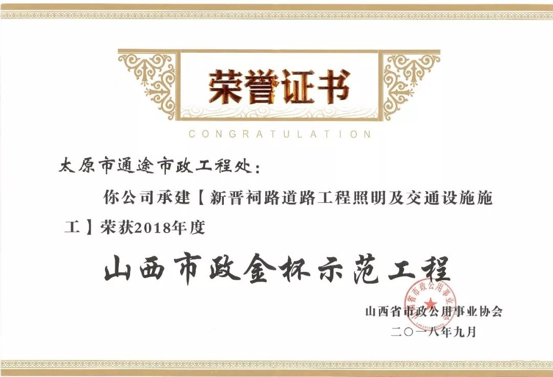 9月20日,通途市政工程處承建的南內(nèi)環(huán)快速化改造工程照明及交通設(shè)施施工、新晉祠路道路工程照明及交通設(shè)施施工榮獲山西省市政公用事業(yè)協(xié)會頒發(fā)的2018年度“山西市政金杯示范工程”榮譽(yù)稱號。