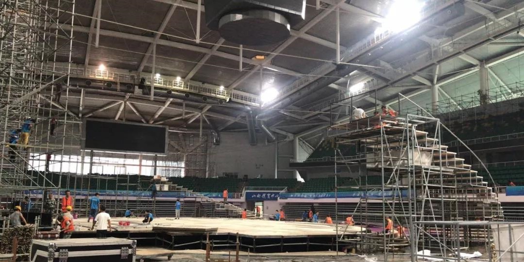 8月9日至11日,四公司先后組織60余名參建人員前往山西省奧體中心體育館與山西體育中心參與搭建和拆裝“二青會(huì)”閉幕式舞臺(tái)。由于時(shí)間緊,任務(wù)重,四公司迅速抽調(diào)參建隊(duì)伍馬不停蹄地趕赴現(xiàn)場,全體參建人員爭分奪秒、協(xié)同作戰(zhàn),搬運(yùn)燈光設(shè)備、搭設(shè)舞臺(tái)地板、安裝電纜與舞臺(tái)腳手架……確保時(shí)間利用最大化,用行動(dòng)詮釋市政“速度與激情”。經(jīng)過3天的努力奮戰(zhàn),圓滿完成了閉幕式舞臺(tái)的搭建與拆裝任務(wù)。