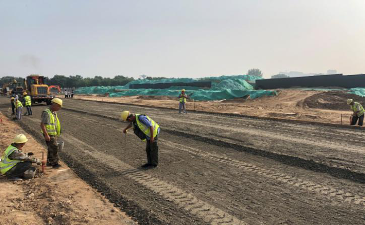 8月14日下午2點(diǎn),由八公司承建的迎新西一條等五條道路改造工程迎新西一條(迎新北三巷~迎新北二巷)施工現(xiàn)場(chǎng)一派熱火朝天的繁忙景象,一臺(tái)臺(tái)平地機(jī)、壓路機(jī)和鏟車正各司其職,正配合施工人員進(jìn)行第一層水穩(wěn)的施工作業(yè)。施工現(xiàn)場(chǎng),安全員堅(jiān)持現(xiàn)場(chǎng)巡查,及時(shí)排查安全隱患;測(cè)量員盯在現(xiàn)場(chǎng),運(yùn)用全站儀進(jìn)行測(cè)量放線、復(fù)核工作,準(zhǔn)確確定攤鋪層中線及邊線,不斷檢測(cè)攤鋪和碾壓后的標(biāo)高,及時(shí)糾正施工中的偏差;質(zhì)檢員全過(guò)程堅(jiān)守現(xiàn)場(chǎng),現(xiàn)場(chǎng)取樣測(cè)定灰計(jì)量,不間斷地對(duì)攤鋪厚度和寬度進(jìn)行測(cè)量,測(cè)定水泥穩(wěn)定基層壓實(shí)度,認(rèn)真填寫(xiě)自檢記錄;施工員及時(shí)協(xié)調(diào)現(xiàn)場(chǎng)施工問(wèn)題,合理安排施工機(jī)械和施工人員,時(shí)刻關(guān)注攤鋪情況,確保水穩(wěn)攤鋪平整、碾壓到位;材料員對(duì)進(jìn)場(chǎng)材料嚴(yán)格把關(guān),保證水穩(wěn)料及時(shí)供應(yīng),整個(gè)攤鋪過(guò)程銜接有序、進(jìn)展順利。下一步將進(jìn)行其他路段水穩(wěn)鋪設(shè)工作。鏡頭下,記錄的只是短短一個(gè)瞬間;鏡頭外,集團(tuán)公司全體施工人員戰(zhàn)高溫冒酷暑,加班加點(diǎn)加緊施工。他們的每一滴汗都融進(jìn)了腳下的道路,他們用“奔跑的速度”詮釋“市政力量”。