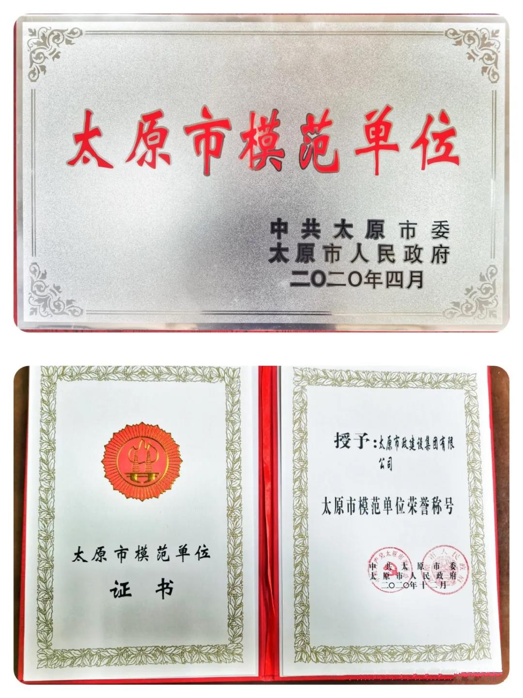 集團公司被市委、市政府授予“太原市模范單位”榮譽稱號;聚興勞務(wù)公司王留金榮獲太原市“特級勞動模范”榮譽稱號;一公司張棟超榮獲太原市“勞動模范”榮譽稱號;二公司王天榮、郝紅勝被命名為“晉陽工匠”榮譽稱號;一公司汾東污水處理廠及配套管網(wǎng)一期二步工程項目部、二公司火車南站西廣場導(dǎo)改工程項目部和聚興勞務(wù)公司孫瑞臣勞務(wù)隊被授予太原市“工人先鋒號”榮譽稱號。