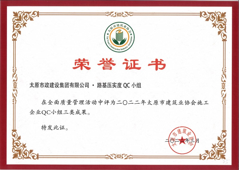 2022年太原市建筑業(yè)協(xié)會(huì)施工企業(yè)QC小組二類成果_路基壓實(shí)度QC小組